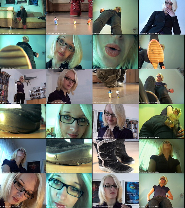 Three new movies with Lady Tiger vs. some little bug people. Including many pov crush scenes, butt crush, nice outfits and a great girl - Enjoy!